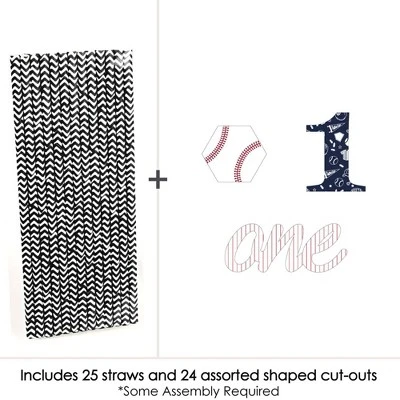 1st Birthday Batter Up – Baseball Straw Decor INCLUDES 24 paper cut outs, 24 coordinating paper straws & 40 clear stickers for easy assembly. 1st Birthday Batter Up – Baseball DIY party supplies are perfect for a first birthday party. Baseball First Birthday Straw Decor party kit SIZE 8 # one 2″ wide x 2.75″ tall; 8 one (words) 4.25″ wide x 1.75″ tall; 8 hexagon 2.25″ wide x 2″ tall; and 24 chevron striped paper straws 7.75″ tall. EASY PARTY DECORATIONS: 1st Birthday Batter Up – Baseball straw decor will add a touch of charm to your birthday party tables. Baseball 1st bday straw decor will also look great at your beverage bar. Use these adorable baseball birthday party accessories as straws or swizzle sticks. The paper straws can also be cut in half and used as cupcake picks once the shaped cut out is attached. PREMIUM PARTY SUPPLIES: 1st Birthday Batter Up – Baseball paper cut out straw decorations are professionally printed on heavy-duty card stock paper with a photo-like shine. They are individually inspected and carefully packaged by hand, along with coordinating paper straws. 1st Birthday Batter Up – Baseball Straw Decor will require some easy assembly. Simply adhere the shaped cut outs to the straws using the included clear stickers. Please Note: Mason Jars shown for display purposes and are not included.
