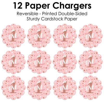 1st Birthday Little Miss Onederful Paper Chargers INCLUDES set of 12 reversible round table decorations. Create an exciting look at your Girl First Birthday Party when you use paper chargers to elevate your table setting and accent your dinnerware. Tablescape Accent: 1st Birthday Little Miss Onederful chargers will add a festive flare to your tablescape. Whether it’s a large feast gathering or a close-knit gathering with the family, paper chargers will add a splash of color and are a great alternative to paper doilies. Easy Decor: Dress up your table with layers! Add a plate to the center of paper chargers. Pink and Gold Themed paper charger is an easy solution for your table setting decor and perfect for complementing your tableware. The scallop border can be flared up for an elevated look and the backside can be used for an alternate look. High-Quality Supply: 1st Birthday Little Miss Onederful Paper Chargers are professionally printed double-sided on sturdy cardstock paper with a photo-like shine. Paper chargers measure 11.25” in diameter and are the perfect final touch to complete your Girl First Birthday Party. Made In The USA: 1st Birthday Little Miss Onederful Paper Chargers are designed and manufactured at our Wisconsin facility using materials that are Made in the USA. 1st Birthday Little Miss Onederful Paper Chargers uses a No-Mess Glitter Print: Our Paper Chargers are designed with a printed image of glitter, eliminating glitter flake while maximizing bling effect!