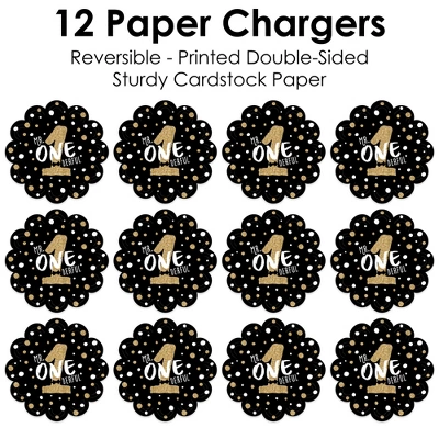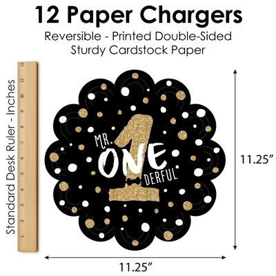 1st Birthday Little Mr. Onederful Paper Chargers INCLUDES set of 12 reversible round table decorations. Create an exciting look at your Boy First Birthday Party when you use paper chargers to elevate your table setting and accent your dinnerware. Tablescape Accent: 1st Birthday Little Mr. Onederful chargers will add a festive flare to your tablescape. Whether it’s a large feast gathering or a close-knit gathering with the family, paper chargers will add a splash of color and are a great alternative to paper doilies. Easy Decor: Dress up your table with layers! Add a plate to the center of paper chargers. Black and Gold Themed paper charger is an easy solution for your table setting decor and perfect for complementing your tableware. The scallop border can be flared up for an elevated look and the backside can be used for an alternate look. High-Quality Supply: 1st Birthday Little Mr. Onederful Paper Chargers are professionally printed double-sided on sturdy cardstock paper with a photo-like shine. Paper chargers measure 11.25” in diameter and are the perfect final touch to complete your Boy First Birthday Party. Made In The USA: 1st Birthday Little Mr. Onederful Paper Chargers are designed and manufactured at our Wisconsin facility using materials that are Made in the USA. 1st Birthday Little Mr. Onederful Paper Chargers uses a No-Mess Glitter Print: Our Paper Chargers are designed with a printed image of glitter, eliminating glitter flake while maximizing bling effect!