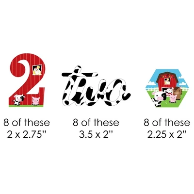 2nd Birthday Farm Animals Straw Decor INCLUDES 24 paper cut outs, 24 coordinating paper straws & 40 clear stickers for easy assembly. 2nd Birthday Farm Animals DIY party supplies are perfect for a birthday party. Barnyard Second Birthday Straw Decor party kit SIZE 8 # two 2″ wide x 2.75″ tall; 8 two (words) 3.5″ wide x 2″ tall; 8 hexagon 2.25″ wide x 2″ tall; and 24 chevron striped paper straws 7.75″ tall. EASY PARTY DECORATIONS: 2nd Birthday Farm Animals straw decor will add a touch of charm to your birthday party tables. Barnyard 2nd birthday straw decor will also look great at your beverage bar. Use these adorable barnyard second birthday party accessories as straws or swizzle sticks. The paper straws can also be cut in half and used as cupcake picks once the shaped cut out is attached. PREMIUM PARTY SUPPLIES: 2nd Birthday Farm Animals paper cut out straw decorations are professionally printed on heavy-duty card stock paper with a photo-like shine. They are individually inspected and carefully packaged by hand, along with coordinating paper straws. 2nd Birthday Farm Animals Straw Decor will require some easy assembly. Simply adhere the shaped cut outs to the straws using the included clear stickers. Get creative with your DIY birthday party decoration ideas! Please Note: Mason Jars shown for display purposes and are not included.