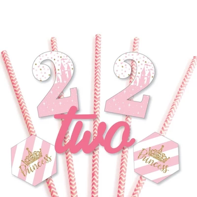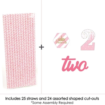 Big Dot Of Happiness 2nd Birthday Little Princess Crown – Paper Straw Decor – Pink & Gold Second Birthday Party Striped Decorative Straws – Set Of 24