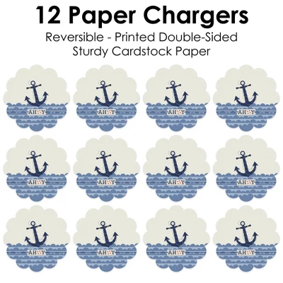 Ahoy – Nautical Paper Chargers INCLUDES set of 12 reversible round table decorations. Create an exciting look at your Birthday Party or Baby Shower when you use paper chargers to elevate your table setting and accent your dinnerware. Tablescape Accent: Ahoy – Nautical chargers will add a festive flare to your tablescape. Whether it’s a large feast gathering or a close-knit gathering with the family, paper chargers will add a splash of color and are a great alternative to paper doilies. Easy Decor: Dress up your table with layers! Add a plate to the center of paper chargers. Blue Anchor Themed paper charger is an easy solution for your table setting decor and perfect for complementing your tableware. The scallop border can be flared up for an elevated look and the backside can be used for an alternate look. High-Quality Supply: Ahoy – Nautical Paper Chargers are professionally printed double-sided on sturdy cardstock paper with a photo-like shine. Paper chargers measure 11.25” in diameter and are the perfect final touch to complete your Birthday Party or Baby Shower. Made In The USA: Ahoy – Nautical Paper Chargers are designed and manufactured at our Wisconsin facility using materials that are Made in the USA.