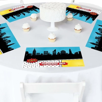 Activity Placemats INCLUDE 16 Bam Superhero-themed paper activity placemats for kids. EASY CLEAN UP: Bam Superhero paper placemats SIZE 15.5 inches wide x 11.5 high. Made of sturdy cardstock paper, these disposable placemats will make it easy to clean up after the party is over. Party placemats are perfect for at-home dining tables and easy decoration to bring to your favorite restaurant. FUN PARTY ENTERTAINMENT: Activity Placemats are a fun and easy way to keep kids entertained! Each placemat coloring sheet includes matching activities and games. Perfect kids’ activity and party decoration for a Bam Superhero birthday party. PAPER PLACEMATS: Bam Superhero placemats are professionally printed double-sided on sturdy cardstock paper. Front side features our Bam Superhero theme design with a photo-like shine. Flip the placemat over for kid friendly activities. Each placemat is individually inspected and carefully packaged by hand. MADE IN THE USA: Bam Superhero paper coloring sheets and activity placemats are designed and manufactured at our Wisconsin facility using materials that are Made in the USA.