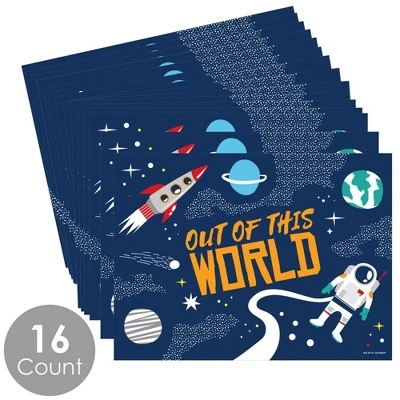 Blast Off to Outer Space Placemats INCLUDE: 16 paper placemats. Placemats will arrive flat and party ready! EASY CLEAN UP: Blast Off to Outer Space paper placemats SIZE 15.5 inches wide x 11.5 high. Made of sturdy cardstock paper, these disposable placemats will make it easy to clean up after the party is over. Party placemats are perfect for at-home dining tables or to bring to your favorite restaurant as an easy decoration. PARTY TABLE DECORATIONS: Placemats are a fun and easy party table decoration for a Blast Off to Outer Space baby shower or birthday party. Use Blast Off to Outer Space party placemats to style dining tables, buffet tables, banquet halls, and more! Blast Off to Outer Space party table decoration placemats will make a statement however you choose to use them. PAPER PLACEMATS: Set of 16 Blast Off to Outer Space placemats are professionally printed on sturdy cardstock paper. Each placemat is individually inspected and carefully packaged to arrive flat. MADE IN THE USA: Blast Off to Outer Space paper party placemats are designed and manufactured at our Wisconsin facility using materials that are Made in the USA.
