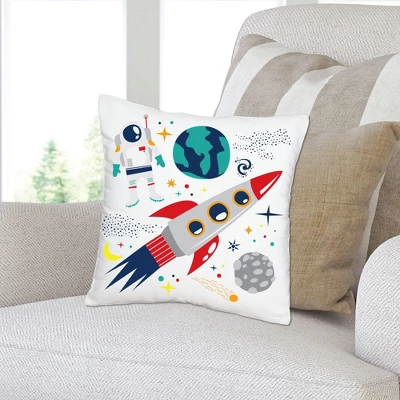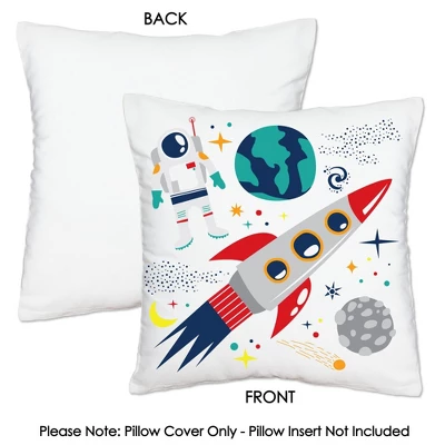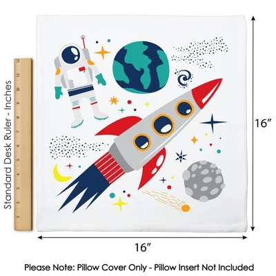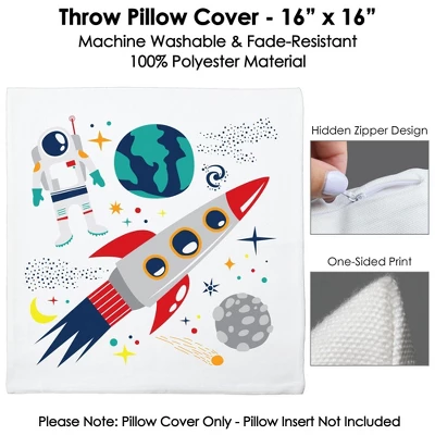 Blast Off to Outer Space Pillow Cover INCLUDES 1 polyester fabric material pillowcase approximately 16 in x 16 in with a hidden zipper design. Excellent for your next Baby Shower or Birthday Party or as everyday decor. One-sided printing only; the backside of pillow cover will be white. Pillow insert not included. COZY COMFORT: Soft and comfortable, the pillow cover is gentle and made of durable material with a canvas-like texture. Fade-resistant and easy to care, the Astronaut pillow cover is great for home decoration and relaxation. EFFORTLESS DECOR: Elevating your home style is easier than ever. With vivid colors and polished design, the pillow cover adds harmony to your space with no fuss. It’s the perfect accent for your sofa, couch, bed, or other indoor furniture. HIGH-QUALITY: Rocket Ship Pillow Cover is professionally printed on 100% polyester material. To ensure long-lasting color vibrancy, machine wash warm. Do not bleach, tumble dry, or dry clean. Warm iron inside out. PRINTED IN THE USA: Blast Off to Outer Space Home Decorative Throw Pillow Cover is designed and manufactured at our Wisconsin facility using materials that are Printed in the USA – Pillow Fabric Made in China.
