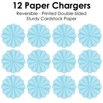 Blue Stripes Paper Chargers includes set of 12 reversible round table decorations. Create an exciting look at your Simple party when you use paper chargers to elevate your table setting and accent your dinnerware. Tablescape Accent: Blue Stripes chargers will add a festive flare to your tablescape. Whether it’s a large feast gathering or a close-knit gathering with the family, paper chargers will add a splash of color and are a great alternative to paper doilies. Easy Decor: Dress up your table with layers! Add a plate to the center of paper chargers. Pastel Blue themed paper charger is an easy solution for your table setting decor and perfect for complementing your tableware. The scallop border can be flared up for an elevated look and the backside can be used for an alternate look. High-Quality Supply: Blue Stripes Paper Chargers are professionally printed double-sided on sturdy cardstock paper with a photo-like shine. Paper chargers measure 11.25″ in diameter and are the perfect final touch to complete your Simple party. Made In The USA: Blue Stripes Paper Chargers are designed and manufactured at our Wisconsin facility using materials that are Made in the USA.