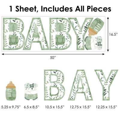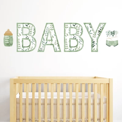 Boho Botanical Baby Standard Banner Wall Decals include 1 sheet of vinyl sticker letters that spell “Baby” and 1 Baby Bottle and 1 Baby Body Suit shapes that will look great as part of your Baby Shower Party decorations. Wall Decal sheet measures 50 inches wide by 16.5 inches tall. Pieces range in size from 12.75 x 15.5 inches to 5.25 x 9.75 inches. Effortless Decor: Hang the Boho Botanical Baby letters next to each other to form a party banner. They can be hung vertically or horizontally and will add some extra charm to your party space within minutes! Use the wall decal banner at your entryway, over the food table, or on a photo booth backdrop. Easy to Use: Greenery vinyl decals are easy-to-peel and repositionable. Wall art stickers will adhere to various surfaces including painted walls, plastic, wood, glass, and metal. To use, make sure your surface is clean and dry. Slowly peel the sticker from the paper to avoid tearing and smooth over with your hand. They are also easy to remove, leaving no residue. High-Quality Supply: Boho wall stickers come with a quality matte finish and vibrant colors. They are printed on water-resistant professional quality material and will arrive on one full sheet rolled. Made In The USA: Boho Botanical Baby Wall Decals are designed and manufactured at our Wisconsin facility using materials that are Made in the USA.