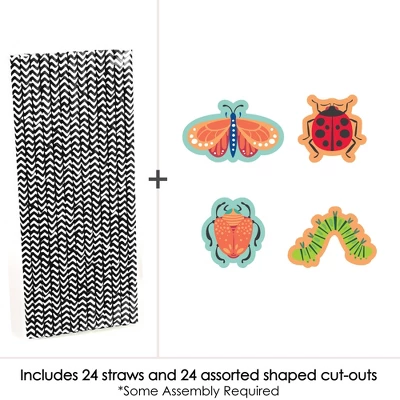 Big Dot Of Happiness Buggin’ Out – Paper Straw Decor – Bugs Birthday Party Striped Decorative Straws – Set Of 24