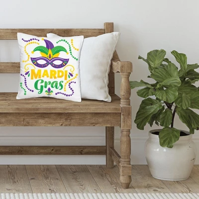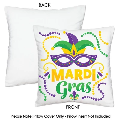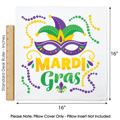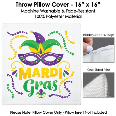 Masquerade Pillow Cover INCLUDES 1 polyester fabric material pillowcase approximately 16 in x 16 in with a hidden zipper design. Excellent for your next New Orleans Party or as everyday decor. One-sided printing only; the backside of pillow cover will be white. Pillow insert not included. COZY COMFORT: Soft and comfortable, the pillow cover is gentle and made of durable material with a canvas-like texture. Fade-resistant and easy to care, the Colorful Mardi Gras Mask pillow cover is great for home decoration and relaxation. EFFORTLESS DECOR: Elevating your home style is easier than ever. With vivid colors and polished design, the pillow cover adds harmony to your space with no fuss. It’s the perfect accent for your sofa, couch, bed, or other indoor furniture. HIGH-QUALITY: Masquerade Pillow Cover is professionally printed on 100% polyester material. To ensure long-lasting color vibrancy, machine wash warm. Do not bleach, tumble dry, or dry clean. Warm iron inside out. PRINTED IN THE USA: Colorful Mardi Gras Mask Home Decorative Throw Pillow Cover is designed and manufactured at our Wisconsin facility using materials that are Printed in the USA – Pillow Cover Fabric Made in China.