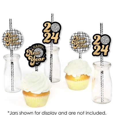 Disco New Year Straw Decor Includes 24 Retro 70’s paper cut outs, 24 coordinating paper straws, and 40 clear stickers for easy assembly. Disco New Year DIY party supplies are perfect for a Groovy 2024 NYE Party. Pumpkin Straw Decor party kit size 8 – Shape 1 (2.5″ x 2.5″), 8 – Shape 2 (2.25″ x 2.25″), and 8 – Shape 3 (2″ x 2.5″), and 24 chevron striped paper straws 7.75″ tall. Easy Party Decorations: Disco New Year straw decor will add a touch of style to your Groovy 2024 NYE Party tables. Vintage straw decor will also look great at your beverage bar. Use these adorable Retro 70’s party accessories as straws or swizzle sticks. The paper straws can also be cut in half and used as cupcake picks once the shaped cut out is attached. Premium Party Supplies: Disco New Year paper cut out straw decorations are professionally printed on heavy-duty cardstock paper with a photo-like shine. They are individually inspected and carefully packaged by hand, along with coordinating paper straws. Vintage Straw Decor will require some easy assembly. Simply adhere the shaped cut outs to the straws using the included clear stickers. Get creative with your DIY Groovy 2024 NYE Party decoration ideas! Please Note: Mason Jars shown for display purposes and are not included.