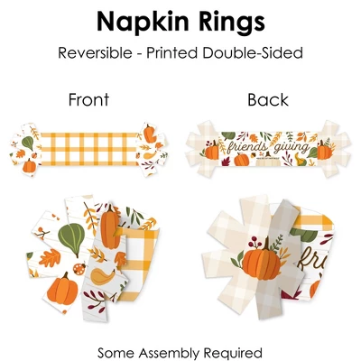 Fall Friends Thanksgiving Napkin Rings includes 24 paper napkin rings with an interlocking tassel-shaped end. Wrap your napkins and cutlery in these paper rings for an elevated look at your Friendsgiving Party. Tableware Accent: Fall Friends Thanksgiving rings will add a festive flare to your napkins, table linens, and cutlery. From large banquets to small gatherings with loved ones, these napkin rings have that extra charm for a next-level table setup. Easy DIY: Friends napkin holders are a no-fuss solution for your table setting decor and require quick and easy assembly. Start by forming the napkin ring into a circle and attach the tassels by interlocking the slits. Slide the tassels together until the art matches up and insert your napkin and dinnerware. High-Quality Supply: Fall Friends Thanksgiving Napkin Rings are reversible and professionally printed double-sided on sturdy cardstock paper with a photo-like shine. Each paper rings measure 2.25″ wide x 2.25″ tall when assembled. Napkin Rings arrive flat and will require some easy assembly. Made In The USA: Fall Friends Thanksgiving Napkin Rings are designed and manufactured at our Wisconsin facility using materials that are Made in the USA.