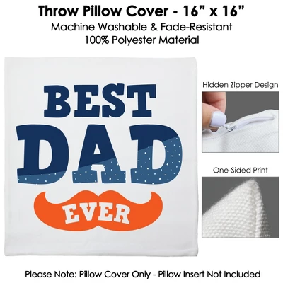 We Love Dad Pillow Cover INCLUDES 1 polyester fabric material pillowcase approximately 16 in x 16 in with a hidden zipper design. Excellent for your next Father’s Day Party or as everyday decor. One-sided printing only; the backside of pillow cover will be white. Pillow insert not included. COZY COMFORT: Soft and comfortable, the pillow cover is gentle and made of durable material with a canvas-like texture. Fade-resistant and easy to care, the Happy Father’s Day pillow cover is great for home decoration and relaxation. EFFORTLESS DECOR: Elevating your home style is easier than ever. With vivid colors and polished design, the pillow cover adds harmony to your space with no fuss. It’s the perfect accent for your sofa, couch, bed, or other indoor furniture. HIGH-QUALITY: We Love Dad Pillow Cover is professionally printed on 100% polyester material. To ensure long-lasting color vibrancy, machine wash warm. Do not bleach, tumble dry, or dry clean. Warm iron inside out. PRINTED IN THE USA: Happy Father’s Day Home Decorative Throw Pillow Cover is designed and manufactured at our Wisconsin facility using materials that are Printed in the USA – Pillow Cover Fabric Made in China.