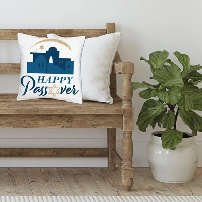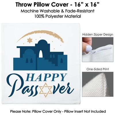 Pesach Pillow Cover INCLUDES 1 polyester fabric material pillowcase approximately 16 in x 16 in with a hidden zipper design. Excellent for your next Jewish Holiday Party or as everyday decor. One-sided printing only; the backside of pillow cover will be white. Pillow insert not included. COZY COMFORT: Soft and comfortable, the pillow cover is gentle and made of durable material with a canvas-like texture. Fade-resistant and easy to care, the Happy Passover pillow cover is great for home decoration and relaxation. EFFORTLESS DECOR: Elevating your home style is easier than ever. With vivid colors and polished design, the pillow cover adds harmony to your space with no fuss. It’s the perfect accent for your sofa, couch, bed, or other indoor furniture. HIGH-QUALITY: Pesach Pillow Cover is professionally printed on 100% polyester material. To ensure long-lasting color vibrancy, machine wash warm. Do not bleach, tumble dry, or dry clean. Warm iron inside out. PRINTED IN THE USA: Happy Passover Home Decorative Throw Pillow Cover is designed and manufactured at our Wisconsin facility using materials that are Printed in the USA – Pillow Cover Fabric Made in China.