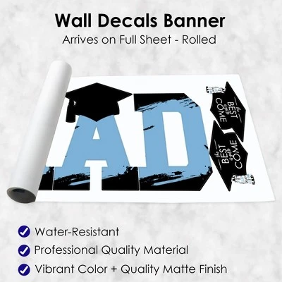 Light Blue Grad – Best is Yet to Come Standard Banner Wall Decals include 1 sheet of vinyl sticker letters that spell “Grad” and 2 grad cap shapes that will look great as part of your Graduation Party decorations. Wall Decal sheet measures 50 inches wide by 16.5 inches tall. Pieces range in size from 11.75 x 15.75 inches to 9.25 x 5.25 inches. Effortless Decor: Hang the Light Blue Grad – Best is Yet to Come letters next to each other to form a party banner. They can be hung vertically or horizontally and will add some extra charm to your party space within minutes! Use the wall decal banner at your entryway, over the food table, or on a photo booth backdrop. Easy to Use: Light Blue Grad – Best is Yet to Come vinyl decals are easy-to-peel and repositionable. Wall art stickers will adhere to various surfaces including painted walls, plastic, wood, glass, and metal. To use, make sure your surface is clean and dry. Slowly peel the sticker from the paper to avoid tearing and smooth over with your hand. They are also easy to remove, leaving no residue. High-Quality Supply: Light Blue Grad – Best is Yet to Come wall stickers come with a quality matte finish and vibrant colors. They are printed on water-resistant professional quality material and will arrive on one full sheet rolled. Made In The USA: Light Blue Grad – Best is Yet to Come Wall Decals are designed and manufactured at our Wisconsin facility using materials that are Made in the USA.