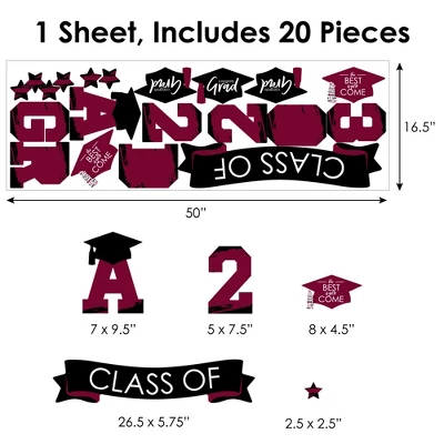 Big Dot of Happiness Maroon Grad – Best is Yet to Come Wall Decals includes 1 sheet of 20 assorted vinyl wall art stickers that you can arrange to add a special touch to your home decor. Wall Decal sheet measures 50″ wide by 16.5″ tall. Pieces range in size from 26.5 x 5.75″ to 2.5 x 2.5″. Effortless Decor: The Burgundy Grad wall stickers are an easy solution for bringing in some added charm to your space within minutes! You can use the wall decals for party or celebration rooms, impressive photo backdrops, or as easy decor at your Graduation Party. Easy to Use: Maroon Grad – Best is Yet to Come vinyl decals are easy-to-peel and repositionable. Wall art stickers will adhere to various surfaces including painted walls, plastic, wood, glass, and metal. To use, make sure your surface is clean and dry. Slowly peel the sticker from the paper to avoid tearing and smooth over with your hand. They are also easy to remove, leaving no residue. High-Quality Supply: Maroon Grad – Best is Yet to Come wall stickers come with a quality matte finish and vibrant colors. They are printed on water-resistant professional quality material and will arrive on one full sheet rolled. Made In The USA: Burgundy Grad Wall Decals are designed and manufactured at our Wisconsin facility using materials that are Made in the USA.