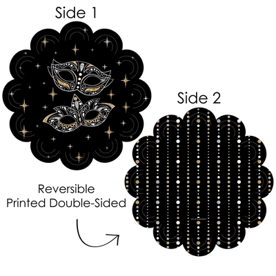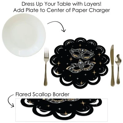 Masquerade Paper Chargers INCLUDES set of 12 reversible round table decorations. Create an exciting look at your Prom or Homecoming Party when you use paper chargers to elevate your table setting and accent your dinnerware. Tablescape Accent: Masquerade chargers will add a festive flare to your tablescape. Whether it’s a large feast gathering or a close-knit gathering with the family, paper chargers will add a splash of color and are a great alternative to paper doilies. Easy Decor: Dress up your table with layers! Add a plate to the center of paper chargers. Carnival Mask Themed paper charger is an easy solution for your table setting decor and perfect for complementing your tableware. The scallop border can be flared up for an elevated look and the backside can be used for an alternate look. High-Quality Supply: Masquerade Paper Chargers are professionally printed double-sided on sturdy cardstock paper with a photo-like shine. Paper chargers measure 11.25” in diameter and are the perfect final touch to complete your Prom or Homecoming Party. Made In The USA: Masquerade Paper Chargers are designed and manufactured at our Wisconsin facility using materials that are Made in the USA. Masquerade Paper Chargers uses a No-Mess Glitter Print: Our Paper Chargers are designed with a printed image of glitter, eliminating glitter flake while maximizing bling effect!