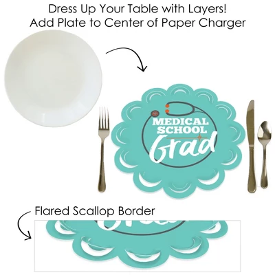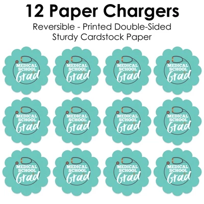 - Professionally Printed Double-Sided On Sturdy Cardstock Paper. Charger Design Reads: “Medical School Grad”