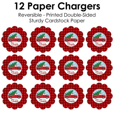 Merry Little Christmas Tree Paper Chargers INCLUDES set of 12 reversible round table decorations. Create an exciting look at your Holiday and Christmas Party when you use paper chargers to elevate your table setting and accent your dinnerware. Tablescape Accent: Merry Little Christmas Tree chargers will add a festive flare to your tablescape. Whether it’s a large feast gathering or a close-knit gathering with the family, paper chargers will add a splash of color and are a great alternative to paper doilies. Easy Decor: Dress up your table with layers! Add a plate to the center of paper chargers. Red Truck & Plaid Themed paper charger is an easy solution for your table setting decor and perfect for complementing your tableware. The scallop border can be flared up for an elevated look and the backside can be used for an alternate look. High-Quality Supply: Merry Little Christmas Tree Paper Chargers are professionally printed double-sided on sturdy cardstock paper with a photo-like shine. Paper chargers measure 11.25” in diameter and are the perfect final touch to complete your Holiday and Christmas Party. Made In The USA: Merry Little Christmas Tree Paper Chargers are designed and manufactured at our Wisconsin facility using materials that are Made in the USA.