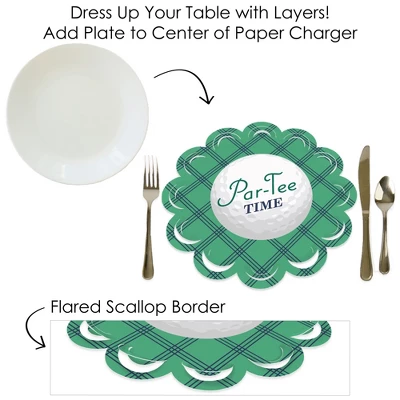 - Professionally Printed Double-Sided On Sturdy Cardstock Paper. Charger Design Reads: “Par-Tee Time”