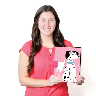 Pawty Like a Puppy Girl Wall Art Set INCLUDES 3 ready-to-hang dog themed panels and non-marking wall mounts for easy hanging. Pawty Like a Puppy Girl artwork is perfect for a nursery, kids room or playroom. Pawty Like a Puppy Girl Wall Art & Kids Room Decor SIZE each 10 inches high x 7.5 inches wide x .5 inches thick. Pink puppy lightweight art prints will arrive ready to use – no frame needed. The black edge gives each print a modern, finished look. EASY TO HANG: Simply attach a non-marking wall mount (included) to each corner of a Pawty Like a Puppy Girl art panel and press to hang in desired location. Wall mounts are repositionable, so you can redesign your artwork display at any time. PREMIUM HOME DECOR: 3-piece Pawty Like a Puppy Girl Wall Art Set is professionally printed on thick material with a black edge. You will not need to frame this set of doggie room decor. Each standout print is ready to hang and will add a contemporary touch to any room. MADE IN THE USA: Pawty Like a Puppy Girl Nursery Wall Art & Kids Room Decor is designed and manufactured at our Wisconsin facility using materials that are Made in the USA.