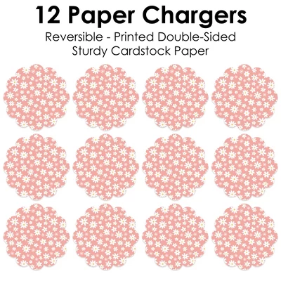 Pink Daisy Flowers Paper Chargers INCLUDES set of 12 reversible round table decorations. Create an exciting look at your Floral party when you use paper chargers to elevate your table setting and accent your dinnerware. Tablescape Accent: Pink Daisy Flowers chargers will add a festive flare to your tablescape. Whether it’s a large feast gathering or a close-knit gathering with the family, paper chargers will add a splash of color and are a great alternative to paper doilies. Easy Decor: Dress up your table with layers! Add a plate to the center of paper chargers. Boho Floral paper charger is an easy solution for your table setting decor and perfect for complementing your tableware. The scallop border can be flared up for an elevated look and the backside can be used for an alternate look. High-Quality Supply: Pink Daisy Flowers Paper Chargers are professionally printed double-sided on sturdy cardstock paper with a photo-like shine. Paper chargers measure 11.25″ in diameter and are the perfect final touch to complete your Floral party. Made In The USA: Pink Daisy Flowers Paper Chargers are designed and manufactured at our Wisconsin facility using materials that are Made in the USA.