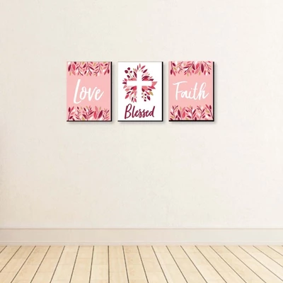 Pink Elegant Cross Wall Art Set INCLUDES 3 ready-to-hang girl religious themed panels and non-marking wall mounts for easy hanging. Pink Elegant Cross Religious artwork is perfect for home decor. Pink Elegant Cross Wall Art & Fall Decor SIZE each 10 inches high x 7.5 inches wide x .5 inches thick. Girl religious lightweight art prints will arrive ready to use – no frame needed. The black edge gives each print a modern, finished look. EASY TO HANG: Simply attach a non-marking wall mount (included) to each corner of a Pink Elegant Cross art panel and press to hang in desired location. Wall mounts are repositionable, so you can redesign your artwork display at any time. PREMIUM HOME DECOR: 3-piece Pink Elegant Cross Wall Art Set is professionally printed on thick material with a black edge. You will not need to frame this set of girl religious room decor. Each standout print is ready to hang and will add a contemporary touch to any room. MADE IN THE USA: Pink Elegant Cross Religious Room Decor is designed and manufactured at our Wisconsin facility using materials that are Made in the USA.