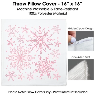 Pink Snowflake Pillow Cover INCLUDES 1 polyester fabric material pillowcase approximately 16 in x 16 in with a hidden zipper design. Excellent for your next Holiday Party, Birthday Party, or Baby Shower or as everyday decor. One-sided printing only; the backside of pillow cover will be white. Pillow insert not included. COZY COMFORT: Soft and comfortable, the pillow cover is gentle and made of durable material with a canvas-like texture. Fade-resistant and easy to care, the Pink Winter Wonderland pillow cover is great for home decoration and relaxation. EFFORTLESS DECOR: Elevating your home style is easier than ever. With vivid colors and polished design, the pillow cover adds harmony to your space with no fuss. It’s the perfect accent for your sofa, couch, bed, or other indoor furniture. HIGH-QUALITY: Pink Snowflake Pillow Cover is professionally printed on 100% polyester material. To ensure long-lasting color vibrancy, machine wash warm. Do not bleach, tumble dry, or dry clean. Warm iron inside out. PRINTED IN THE USA: Pink Winter Wonderland Home Decorative Throw Pillow Cover is designed and manufactured at our Wisconsin facility using materials that are Printed in the USA – Pillow Fabric Made in China.