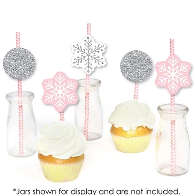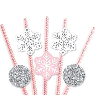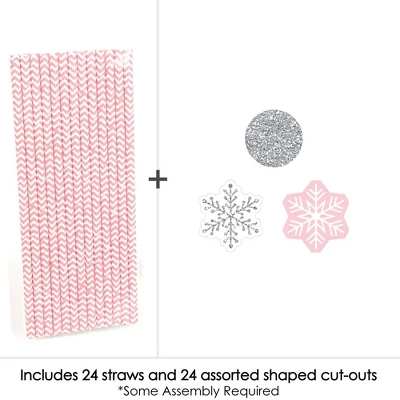 Big Dot Of Happiness Pink Winter Wonderland – Paper Straw Decor – Holiday Snowflake Birthday Party Or Baby Shower Striped Decorative Straws -Set Of 24
