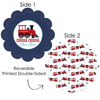 Railroad Party Crossing Paper Chargers INCLUDES set of 12 reversible round table decorations. Create an exciting look at your Birthday Party or Baby Shower when you use paper chargers to elevate your table setting and accent your dinnerware. Tablescape Accent: Railroad Party Crossing chargers will add a festive flare to your tablescape. Whether it’s a large feast gathering or a close-knit gathering with the family, paper chargers will add a splash of color and are a great alternative to paper doilies. Easy Decor: Dress up your table with layers! Add a plate to the center of paper chargers. Steam Train Themed paper charger is an easy solution for your table setting decor and perfect for complementing your tableware. The scallop border can be flared up for an elevated look and the backside can be used for an alternate look. High-Quality Supply: Railroad Party Crossing Paper Chargers are professionally printed double-sided on sturdy cardstock paper with a photo-like shine. Paper chargers measure 11.25” in diameter and are the perfect final touch to complete your Birthday Party or Baby Shower. Made In The USA: Railroad Party Crossing Paper Chargers are designed and manufactured at our Wisconsin facility using materials that are Made in the USA.