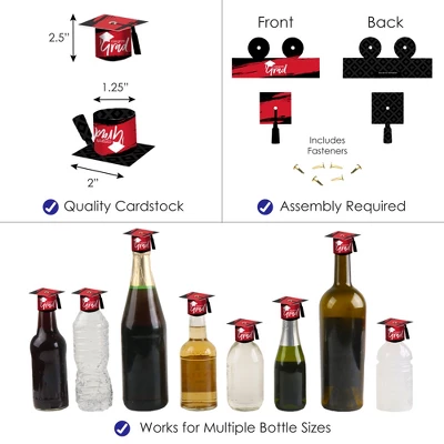 - Set of 20 Grad Cap DIY Bottle Toppers with Fasteners Included