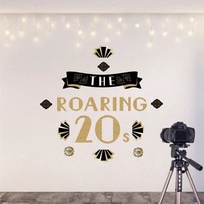 Roaring 20’s Wall Decals Backdrop includes 1 sheet of vinyl wall stickers that include letters and shape pieces that form the perfect Roaring 20s backdrop for your Prom or Birthday Party. Wall Decal sheet measures 50 inches wide by 16.5 inches tall. Pieces range in size from 26.5 x 5.75 inches to 4.5 x 3.75 inches. Effortless Decor: The Roaring 20’s stickers are an easy DIY party decoration that will make a big impact at your celebration. Stick them on a flat wall surface to create that picture-perfect setting and then grab your camera to capture all the fun. Easy to Use: Roaring 20’s vinyl decals are easy-to-peel and repositionable. Wall art stickers will adhere to various surfaces including painted walls, plastic, wood, glass, and metal. To use, make sure your surface is clean and dry. Slowly peel the sticker from the paper to avoid tearing and smooth over with your hand. They are also easy to remove, leaving no residue. High-Quality Supply: Roaring 20’s wall stickers come with a quality matte finish and vibrant colors. They are printed on water-resistant professional quality material and will arrive on one full sheet rolled. Made In The USA: Roaring 20’s Wall Decals are designed and manufactured at our Wisconsin facility using materials that are Made in the USA. Roaring 20’s Vinyl Stickers uses a No-Mess Glitter Print: Our vinyl stickers are designed with a printed image of glitter, eliminating glitter flake while maximizing bling effect!
