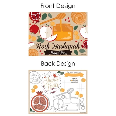 Activity Placemats INCLUDE 16 Rosh Hashanah-themed paper activity placemats for kids. EASY CLEAN UP: Rosh Hashanah paper placemats SIZE 15.5 inches wide x 11.5 high. Made of sturdy cardstock paper, these disposable placemats will make it easy to clean up after the party is over. Party placemats are perfect for at-home dining tables and easy decoration to bring to your favorite restaurant. FUN PARTY ENTERTAINMENT: Activity Placemats are a fun and easy way to keep kids entertained! Each placemat coloring sheet includes matching activities and games. Perfect kids’ activity and party decoration for a Rosh Hashanah New Year. PAPER PLACEMATS: Rosh Hashanah placemats are professionally printed double-sided on sturdy cardstock paper. Front side features our Rosh Hashanah theme design with a photo-like shine. Flip the placemat over for kid friendly activities. Each placemat is individually inspected and carefully packaged by hand. MADE IN THE USA: Rosh Hashanah paper coloring sheets and activity placemats are designed and manufactured at our Wisconsin facility using materials that are Made in the USA.