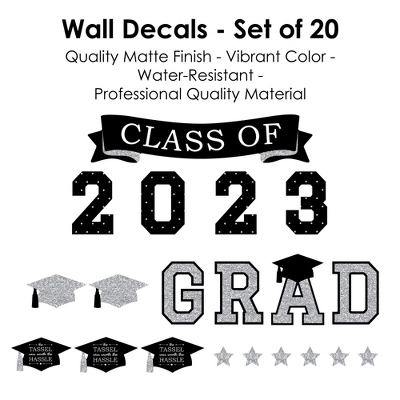 Big Dot of Happiness Tassel Worth The Hassel – Silver Wall Decals includes 1 sheet of 20 assorted vinyl wall art stickers that you can arrange to add a special touch to your home decor. Wall Decal sheet measures 50″ wide by 16.5″ tall. Pieces range in size from 26.5 x 5.75″ to 2.5 x 2.5″. Effortless Decor: The Silver Grad wall stickers are an easy solution for bringing in some added charm to your space within minutes! You can use the wall decals for party or celebration rooms, impressive photo backdrops, or as easy decor at your Graduation Party. Easy to Use: Tassel Worth The Hassel – Silver vinyl decals are easy-to-peel and repositionable. Wall art stickers will adhere to various surfaces including painted walls, plastic, wood, glass, and metal. To use, make sure your surface is clean and dry. Slowly peel the sticker from the paper to avoid tearing and smooth over with your hand. They are also easy to remove, leaving no residue. High-Quality Supply: Tassel Worth The Hassel – Silver wall stickers come with a quality matte finish and vibrant colors. They are printed on water-resistant professional quality material and will arrive on one full sheet rolled. Made In The USA: Silver Grad Wall Decals are designed and manufactured at our Wisconsin facility using materials that are Made in the USA. Tassel Worth The Hassel – Silver Vinyl Stickers uses a No-Mess Glitter Print: Our vinyl stickers are designed with a printed image of glitter, eliminating glitter flake while maximizing bling effect!