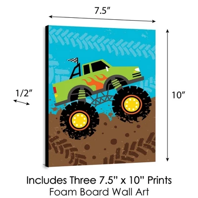 Smash and Crash – Monster Truck Wall Art Set INCLUDES 3 ready-to-hang truck themed panels and non-marking wall mounts for easy hanging. Smash and Crash – Monster Truck artwork is perfect for a nursery, kids room or playroom. Smash and Crash – Monster Truck Wall Art & Kids Room Decor SIZE each 10 inches high x 7.5 inches wide x .5 inches thick. Monster truck lightweight art prints will arrive ready to use – no frame needed. The black edge gives each print a modern, finished look. EASY TO HANG: Simply attach a non-marking wall mount (included) to each corner of a Smash and Crash – Monster Truck art panel and press to hang in desired location. Wall mounts are repositionable, so you can redesign your artwork display at any time. PREMIUM HOME DECOR: 3-piece Smash and Crash – Monster Truck Wall Art Set is professionally printed on thick material with a black edge. You will not need to frame this set of truck room decor. Each standout print is ready to hang and will add a contemporary touch to any room. MADE IN THE USA: Smash and Crash – Monster Truck Nursery Wall Art & Kids Room Decor is designed and manufactured at our Wisconsin facility using materials that are Made in the USA.