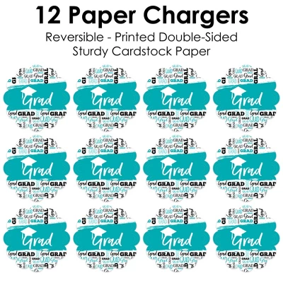 Teal Grad – Best is Yet to Come Paper Chargers INCLUDES set of 12 reversible round table decorations. Create an exciting look at your Graduation party when you use paper chargers to elevate your table setting and accent your dinnerware. Tablescape Accent: Teal Grad – Best is Yet to Come chargers will add a festive flare to your tablescape. Whether it’s a large feast gathering or a close-knit gathering with the family, paper chargers will add a splash of color and are a great alternative to paper doilies. Easy Decor: Dress up your table with layers! Add a plate to the center of paper chargers. Turquoise Themed paper charger is an easy solution for your table setting decor and perfect for complementing your tableware. The scallop border can be flared up for an elevated look and the backside can be used for an alternate look. High-Quality Supply: Teal Grad – Best is Yet to Come Paper Chargers are professionally printed double-sided on sturdy cardstock paper with a photo-like shine. Paper chargers measure 11.25″ in diameter and are the perfect final touch to complete your Graduation party. Made In The USA: Teal Grad – Best is Yet to Come Paper Chargers are designed and manufactured at our Wisconsin facility using materials that are Made in the USA.