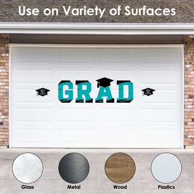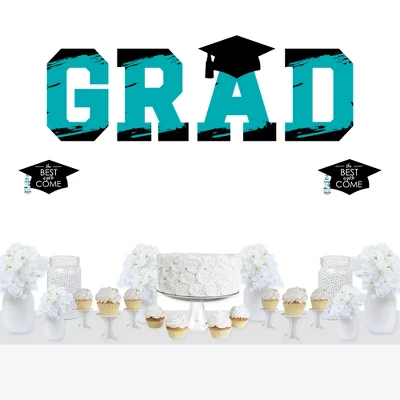 Teal Grad – Best is Yet to Come Standard Banner Wall Decals include 1 sheet of vinyl sticker letters that spell “Grad” and 2 grad cap shapes that will look great as part of your Graduation Party decorations. Wall Decal sheet measures 50 inches wide by 16.5 inches tall. Pieces range in size from 11.75 x 15.75 inches to 9.25 x 5.25 inches. Effortless Decor: Hang the Teal Grad – Best is Yet to Come letters next to each other to form a party banner. They can be hung vertically or horizontally and will add some extra charm to your party space within minutes! Use the wall decal banner at your entryway, over the food table, or on a photo booth backdrop. Easy to Use: Teal Grad – Best is Yet to Come vinyl decals are easy-to-peel and repositionable. Wall art stickers will adhere to various surfaces including painted walls, plastic, wood, glass, and metal. To use, make sure your surface is clean and dry. Slowly peel the sticker from the paper to avoid tearing and smooth over with your hand. They are also easy to remove, leaving no residue. High-Quality Supply: Teal Grad – Best is Yet to Come wall stickers come with a quality matte finish and vibrant colors. They are printed on water-resistant professional quality material and will arrive on one full sheet rolled. Made In The USA: Teal Grad – Best is Yet to Come Wall Decals are designed and manufactured at our Wisconsin facility using materials that are Made in the USA.