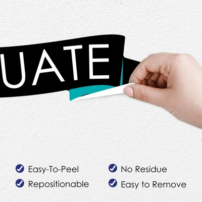 Teal Grad – Best is Yet to Come Wall Decals Backdrop includes 1 sheet of vinyl wall stickers that include letters and shape pieces that form the perfect Turquoise Congrats backdrop for your Graduation Party. Wall Decal sheet measures 50 inches wide by 16.5 inches tall. Pieces range in size from 30 x 6.5 inches to 3.25 x 3 inches. Effortless Decor: The Teal Grad – Best is Yet to Come stickers are an easy DIY party decoration that will make a big impact at your celebration. Stick them on a flat wall surface to create that picture-perfect setting and then grab your camera to capture all the fun. Easy to Use: Teal Grad – Best is Yet to Come vinyl decals are easy-to-peel and repositionable. Wall art stickers will adhere to various surfaces including painted walls, plastic, wood, glass, and metal. To use, make sure your surface is clean and dry. Slowly peel the sticker from the paper to avoid tearing and smooth over with your hand. They are also easy to remove, leaving no residue. High-Quality Supply: Teal Grad – Best is Yet to Come wall stickers come with a quality matte finish and vibrant colors. They are printed on water-resistant professional quality material and will arrive on one full sheet rolled. Made In The USA: Teal Grad – Best is Yet to Come Wall Decals are designed and manufactured at our Wisconsin facility using materials that are Made in the USA.