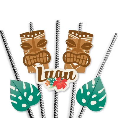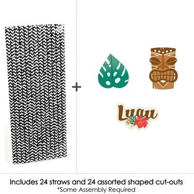 Tropical Luau Straw Decor INCLUDES 24 Luau paper cut outs, 24 coordinating paper straws, and 40 clear stickers for easy assembly. Tropical Luau DIY party supplies are perfect for a Summer Party. Tiki Straw Decor party kit SIZE 6 – Leaf Shaped Paper Die Cuts (2.25” x 2.5”), 6 – Tiki Shaped Paper Die Cuts (2” x 3”), 12 – “Luau” Shaped Paper Die Cuts (2.5” x 2.25”), and 24 chevron striped paper straws 7.75″ tall. EASY PARTY DECORATIONS: Tropical Luau straw decor will add a touch of style to your Beach Party tables. Tiki straw decor will also look great at your beverage bar. Use these adorable Tiki party accessories as straws or swizzle sticks. The paper straws can also be cut in half and used as cupcake picks once the shaped cut out is attached. PREMIUM PARTY SUPPLIES: Tropical Luau paper cut out straw decorations are professionally printed on heavy-duty cardstock paper with a photo-like shine. They are individually inspected and carefully packaged by hand, along with coordinating paper straws. Tiki Straw Decor will require some easy assembly. Simply adhere the shaped cut outs to the straws using the included clear stickers. Get creative with your DIY Hawaiian Party decoration ideas! Please Note: Mason Jars shown for display purposes and are not included.