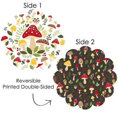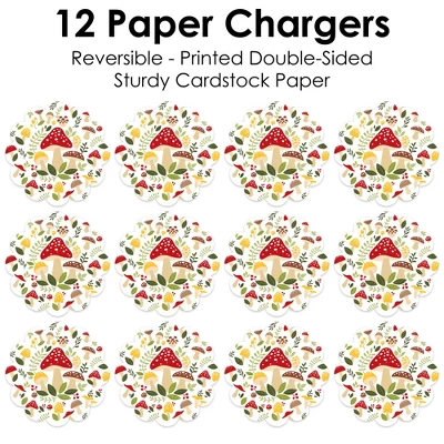 Wild Mushrooms Paper Chargers INCLUDES set of 12 reversible round table decorations. Create an exciting look at your Red Toadstool party when you use paper chargers to elevate your table setting and accent your dinnerware. Tablescape Accent: Wild Mushrooms chargers will add a festive flare to your tablescape. Whether it’s a large feast gathering or a close-knit gathering with the family, paper chargers will add a splash of color and are a great alternative to paper doilies. Easy Decor: Dress up your table with layers! Add a plate to the center of paper chargers. Forest Mushrooms paper charger is an easy solution for your table setting decor and perfect for complementing your tableware. The scallop border can be flared up for an elevated look and the backside can be used for an alternate look. High-Quality Supply: Wild Mushrooms Paper Chargers are professionally printed double-sided on sturdy cardstock paper with a photo-like shine. Paper chargers measure 11.25” in diameter and are the perfect final touch to complete your Red Toadstool party. Made In The USA: Wild Mushrooms Paper Chargers are designed and manufactured at our Wisconsin facility using materials that are Made in the USA.