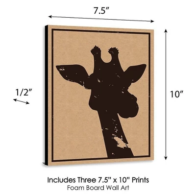 Wild Safari Wall Art Set INCLUDES 3 ready-to-hang safari themed panels and non-marking wall mounts for easy hanging. Wild Safari artwork is perfect for a nursery, kids room or playroom. Wild Safari Wall Art & Kids Room Decor SIZE each 10 inches high x 7.5 inches wide x .5 inches thick. African safari lightweight art prints will arrive ready to use – no frame needed. The black edge gives each print a modern, finished look. EASY TO HANG: Simply attach a non-marking wall mount (included) to each corner of a Wild Safari art panel and press to hang in desired location. Wall mounts are repositionable, so you can redesign your artwork display at any time. PREMIUM HOME DECOR: 3-piece Wild Safari Wall Art Set is professionally printed on thick material with a black edge. You will not need to frame this set of jungle safari room decor. Each standout print is ready to hang and will add a contemporary touch to any room. MADE IN THE USA: Wild Safari Nursery Wall Art & Kids Room Decor is designed and manufactured at our Wisconsin facility using materials that are Made in the USA.