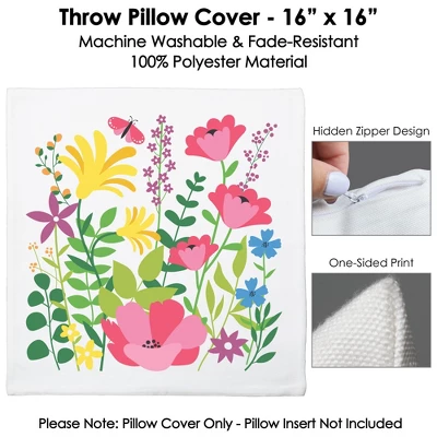 Floral Greenery Pillow Cover INCLUDES 1 polyester fabric material pillowcase approximately 16 in x 16 in with a hidden zipper design. Excellent for your next Boho Floral Party or as everyday decor. One-sided printing only; the backside of pillow cover will be white. Pillow insert not included. COZY COMFORT: Soft and comfortable, the pillow cover is gentle and made of durable material with a canvas-like texture. Fade-resistant and easy to care, the Wildflowers pillow cover is great for home decoration and relaxation. EFFORTLESS DECOR: Elevating your home style is easier than ever. With vivid colors and polished design, the pillow cover adds harmony to your space with no fuss. It’s the perfect accent for your sofa, couch, bed, or other indoor furniture. HIGH-QUALITY: Boho Flowers Pillow Cover is professionally printed on 100% polyester material. To ensure long-lasting color vibrancy, machine wash warm. Do not bleach, tumble dry, or dry clean. Warm iron inside out. PRINTED IN THE USA: Wildflowers Home Decorative Throw Pillow Cover is designed and manufactured at our Wisconsin facility using materials that are Printed in the USA – Pillow Cover Fabric Made in China.