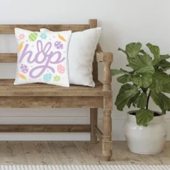Big Dot Of Happiness Spring Easter Bunny - Happy Easter Party Home Decorative Canvas Cushion Case - Throw Pillow Cover - 16 X 16 Inches